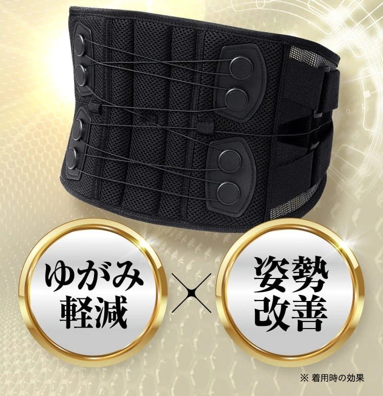 さらに、背中側の4Dプレートと補助ベルトが、腰椎の不自然な反りや動きを制御し、正しいS字カーブを保つ手助けをしてくれます。