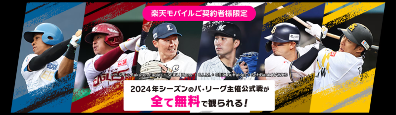 出典:【パ・リーグSpecial】楽天モバイルご契約者限定!追加料金なしでパ・リーグSpecialが見放題 | 楽天TV